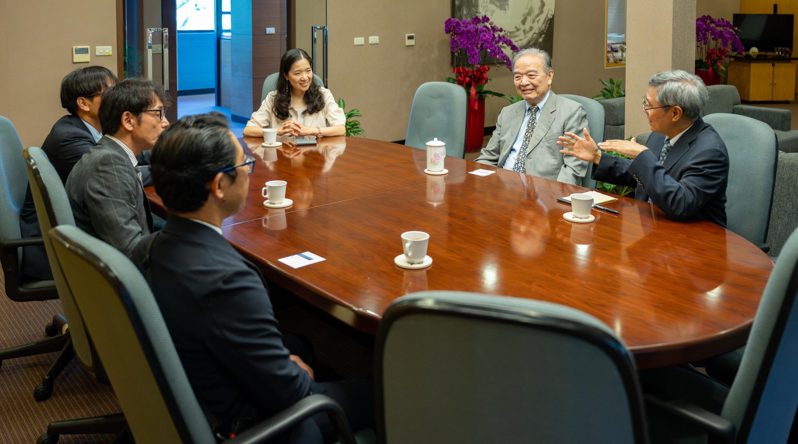 簽約儀式後,茨城縣代表團拜訪銘傳李銓總校長,就未來合作方向交換意見。隨後參訪廣播電台、XR 智能攝影棚與網路電視台等銘傳校園特色設施,酒井雄一校長對銘傳在媒體科技教育的投入表示讚許。