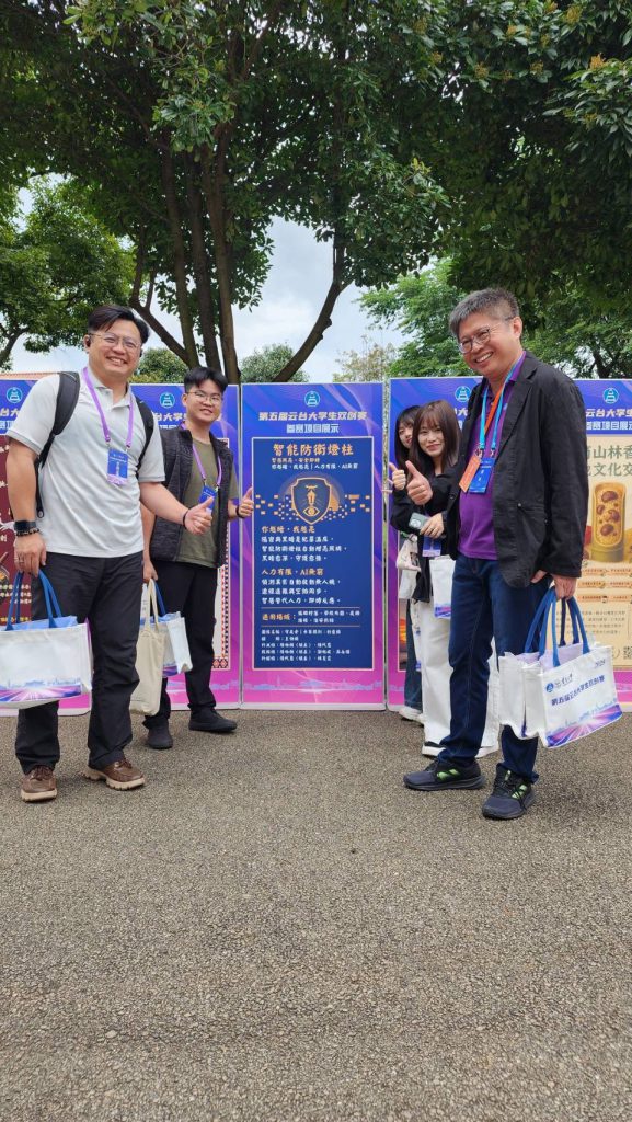 另一組由犯防系陳柏衡、陳代恩、林旻霓、謝旭威、吳永順5位學生,由王伯頎老師指導,提出的「守夜者」智能防衛燈柱設計,榮獲銀獎。此作品以路燈與報警裝置為基礎,結合照明、安全偵測、預警及通報模組,透過AI補足治安人力缺口並減少死角。設備不僅具備照明功能,更能在治安事件發生第一時間自動警示與嚇阻,並以AI即時辨識現場狀況,適用於鄉村偏遠地區及都會空間,展現公共安全科技的創新應用。
