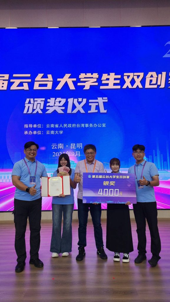 【本刊訊】第五屆雲台大學生雙創賽9/1-2於雲南大學舉行,吸引台灣與雲南20所大學、26組團隊同場較勁。銘傳大學生物醫學工程學系「普經甘來」及犯罪防治學系「守夜者」兩組學生團隊,以專業領域結合卓越創意表現,分別勇奪金獎與銀獎佳績。