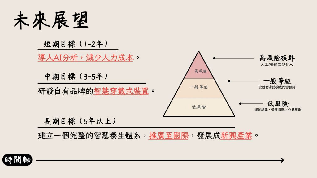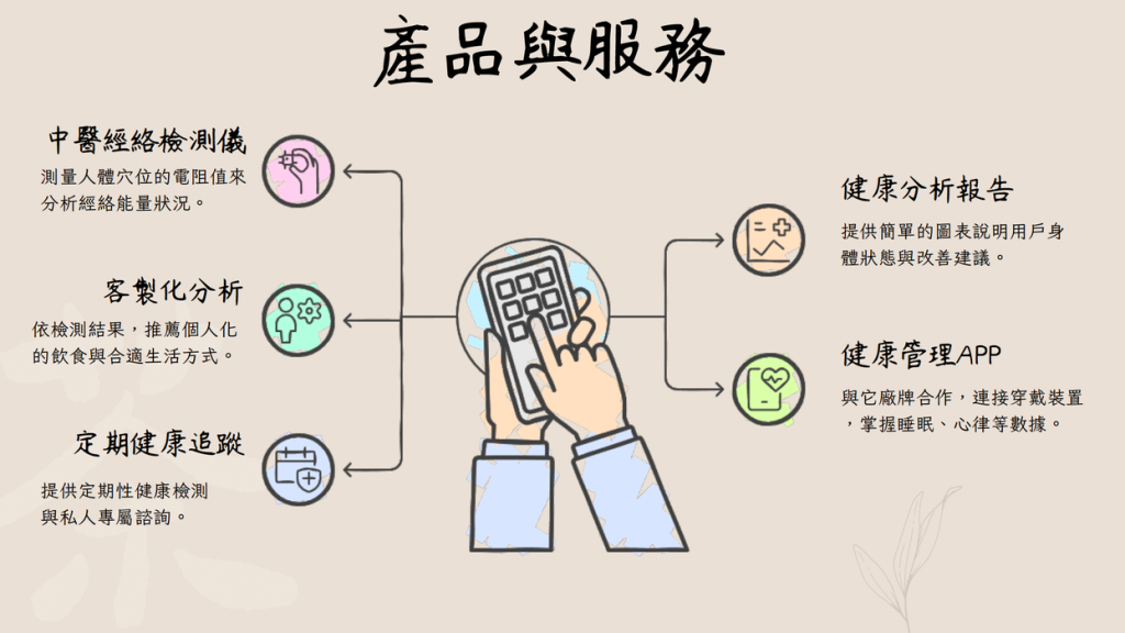 作品結合傳統中醫與現代科技,從雲南特色普洱茶發想,透過中醫非侵入式經絡檢測分析身體能量狀態,再由專業醫師搭配AI模型進行數據判讀,快速生成專屬健康報告,並提出茶飲、飲食及作息等全面改善建議,形成「量測—風險分級—個人化建議—追蹤與回饋」的創新健康管理模式,呼應現代社會對預防醫學的高度需求。