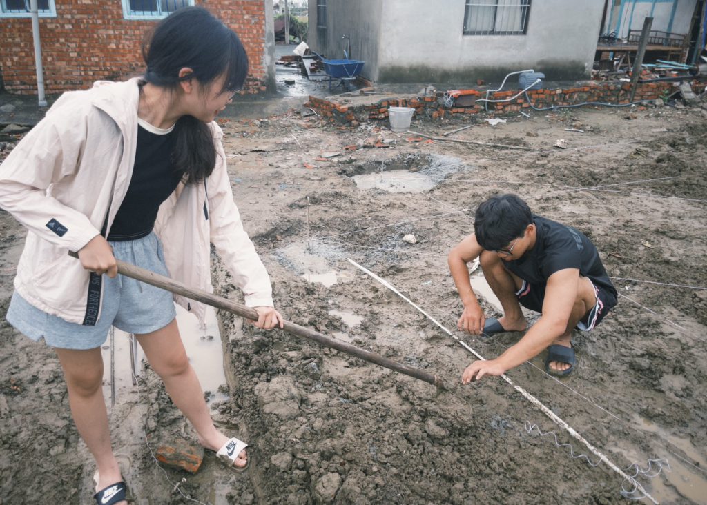 學生團隊於暑假7至8月進駐社區展開施作,卻意外碰上今年最強颱風「丹娜絲」重創台南,基地所在的鹽水亦是重災區。雖然團隊在警報發布前已有防颱準備,仍難抵擋強颱挾帶的暴雨狂風。那一夜,風雨肆虐南台灣平原,宿舍門板被狂風吹打,雨水不斷滲入屋內,電力數度中斷。學生們徹夜難眠,深刻體驗了一場畢生難忘的颱風之夜。基地旁的老屋也在這場風災中受創而拆除,原本的社區營造計畫,因而轉化為一場災後攜手重建的行動,成為凝聚社區向心力與展現韌性的考驗。