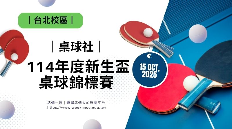 此外,本次比賽自即日起開放報名至10/10(五)12:00截止,報名連結為https://reurl.cc/QaQ6gM。參賽費用50元,桌球社社員可免費報名。比賽當天請攜帶學生證以核對身分,現場亦備有飲料提供。賽事依循中華民國桌球協會最新規則辦理,相關疑問可至北銘桌球社Instagram【mcupingpong_tp】詢問。