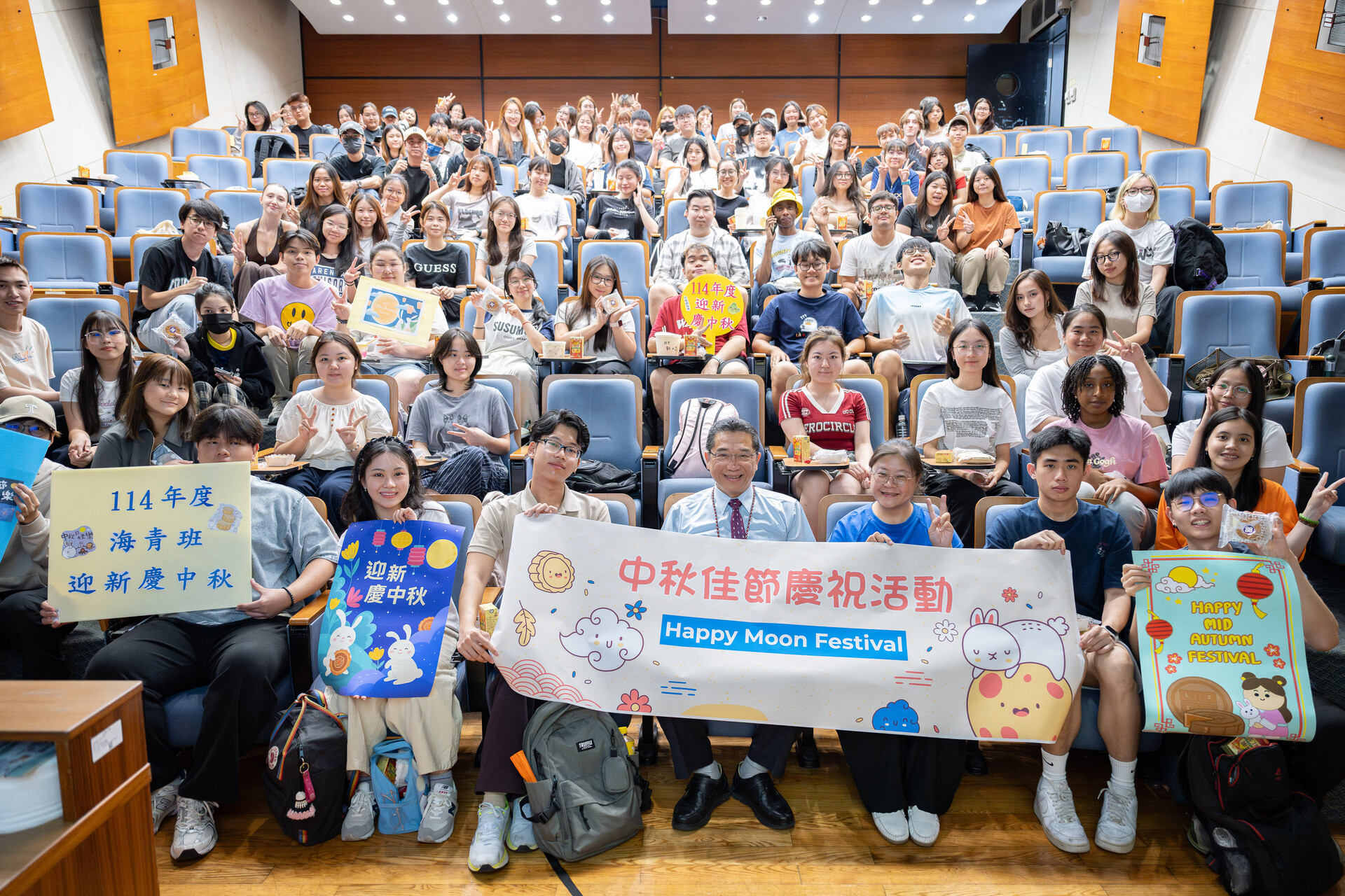 Shortly after, Professor Kuang-hua Liu, Executive Director of the International Education and Exchange Division at MCU, took the stage to deliver a brief speech. In a friendly and welcoming tone, he interacted with students and shared a warm holiday message: “Happy Mid-Autumn Festival!”
