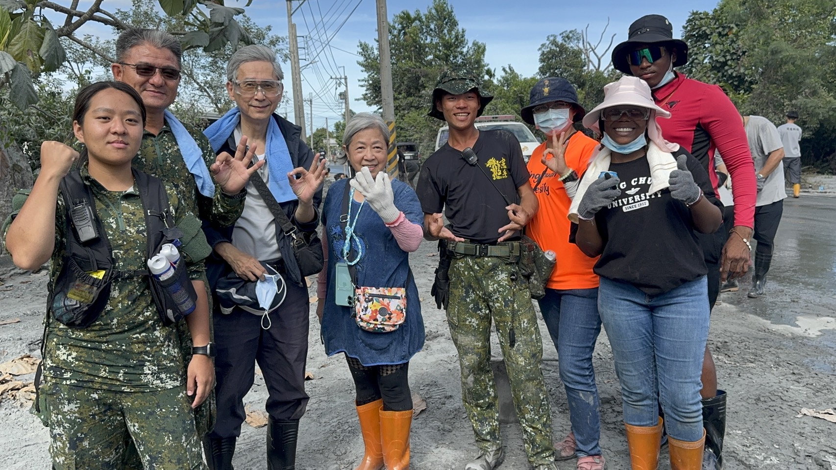 志工團抵達光復後,分組投入佛祖街水溝清淤、搬運泥沙等環境整復工作。值得一提的是,活動中有多位外籍生主動參與,包括來自聖文森、馬來西亞、澳門及香港的同學,跨國籍的互動,讓服務更添溫度與意義。