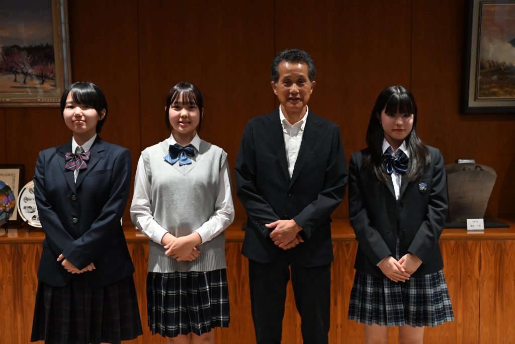 三位高中生返回日本後,10/8接受笠間市山口伸樹市長接見,分享在銘傳學習及體驗台灣文化的精彩成果。