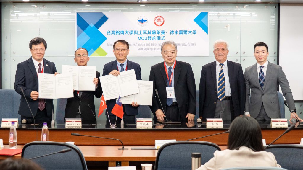 圖為 張啓昌校友促成母校銘傳與土耳其蘇萊曼.德米雷爾大學簽署合作備忘錄。(攝影/陳德明)