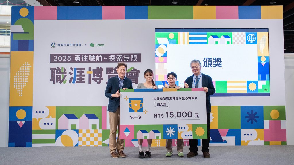 【本刊訊】為提供青年探索多元職涯方向並掌握最新職涯資源,教育部青年發展署10/4在台北世貿一館舉辦「勇往職前,探索無限!職涯博覽會」,匯集超過200個職涯展攤與服務,現場同時舉行「114年大專校院職涯輔導學生心得競賽」頒獎典禮,銘傳大學廣告暨策略行銷學系2組學生分別奪下圖文類、影音類全國冠軍,並有3組傳播學院學生作品獲得影音類評審獎,展現卓越成果!