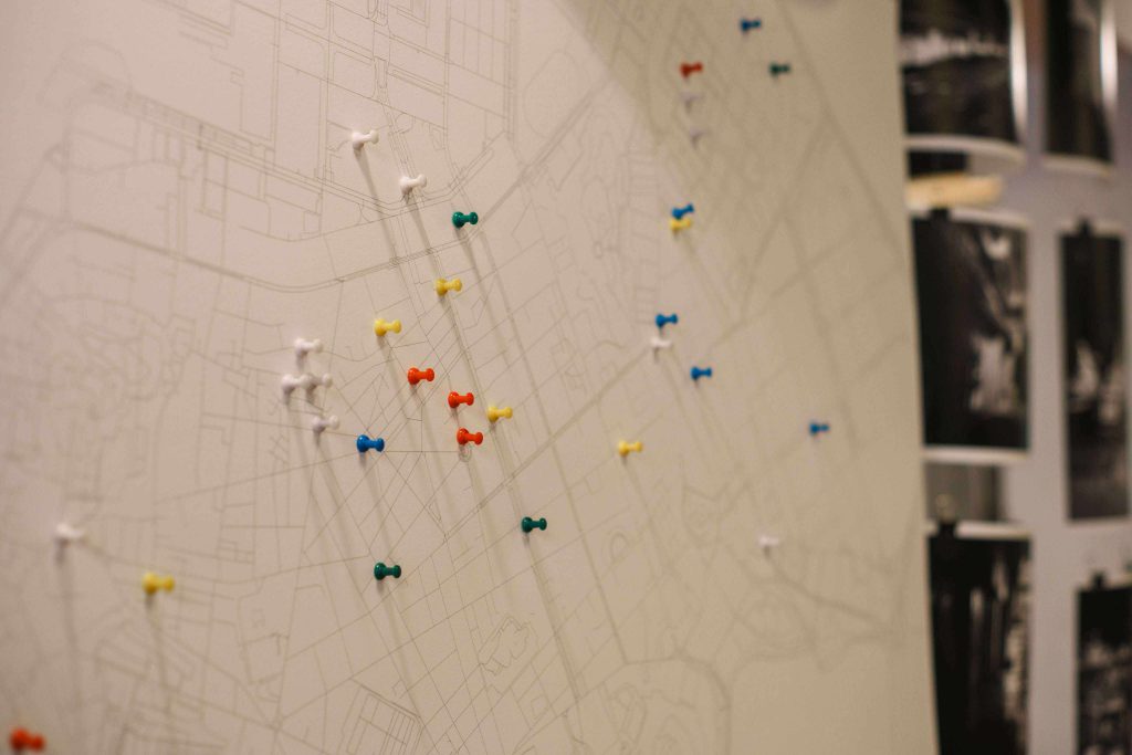 展場中,每張照片都搭配著對應的澳門地圖,每一個圖釘都清楚標示著照片拍攝的地點,讓觀眾彷彿是打開了街景地圖,置身在澳門街頭,展開探索之旅。梁皓俊表示,雖然原本有意將展覽設置為偵探牆的形式,以便與展覽核心理念「找尋並發現刻板印象以外的澳門」產生共鳴,但由於人手和時間限制,最終未能以理想的方式呈現。