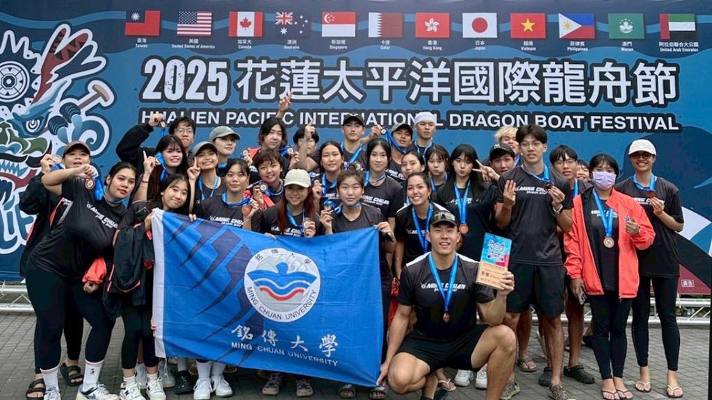 【本刊訊】銘傳大學龍舟隊10/24-26遠征花蓮參加「2025花蓮太平洋國際龍舟節」,在來自美國、加拿大、澳洲、新加坡、卡達、日本等十多個國家的35支隊伍中脫穎而出,勇奪公開混合組500公尺季軍,混合組200公尺再擠進八強,為銘傳收下114學年度首面龍舟大賽獎杯,展現堅實訓練成果與團隊默契。