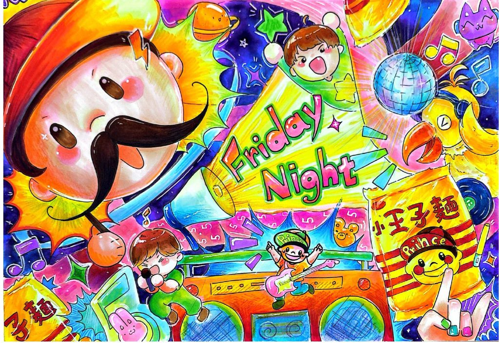 「小王子愛塗鴉繪畫比賽」從幼稚園組、國小組、國中組到社會暨青年組,孩子與大人都以繽紛的創意,描繪出「星期五晚上」的無限可能。所有獲獎作品,將於11/1-2在華山1914文化創意產業園區中4A館紅酒作業場進行展出及舉行頒獎典禮,歡迎師生、民眾免費前往參觀。