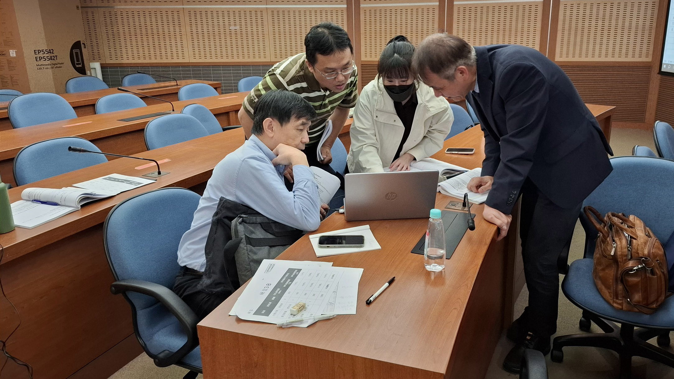 課程原訂於11/10至11/12舉行,因颱風順延至11/14於基河校區J616教室完成。三日的密集訓練由BSI高毅民博士授課,共26位教師及職員完成課程,為校內建構組織層級碳盤查專業團隊奠定基礎。高博士在課堂上指出:「多年授課經驗中,首次看見大學校長親自帶領主管團隊共同參與認證課程,足見銘傳大學對溫室氣體議題的重視,也展現校園碳盤查從高層開始扎根的特色。」