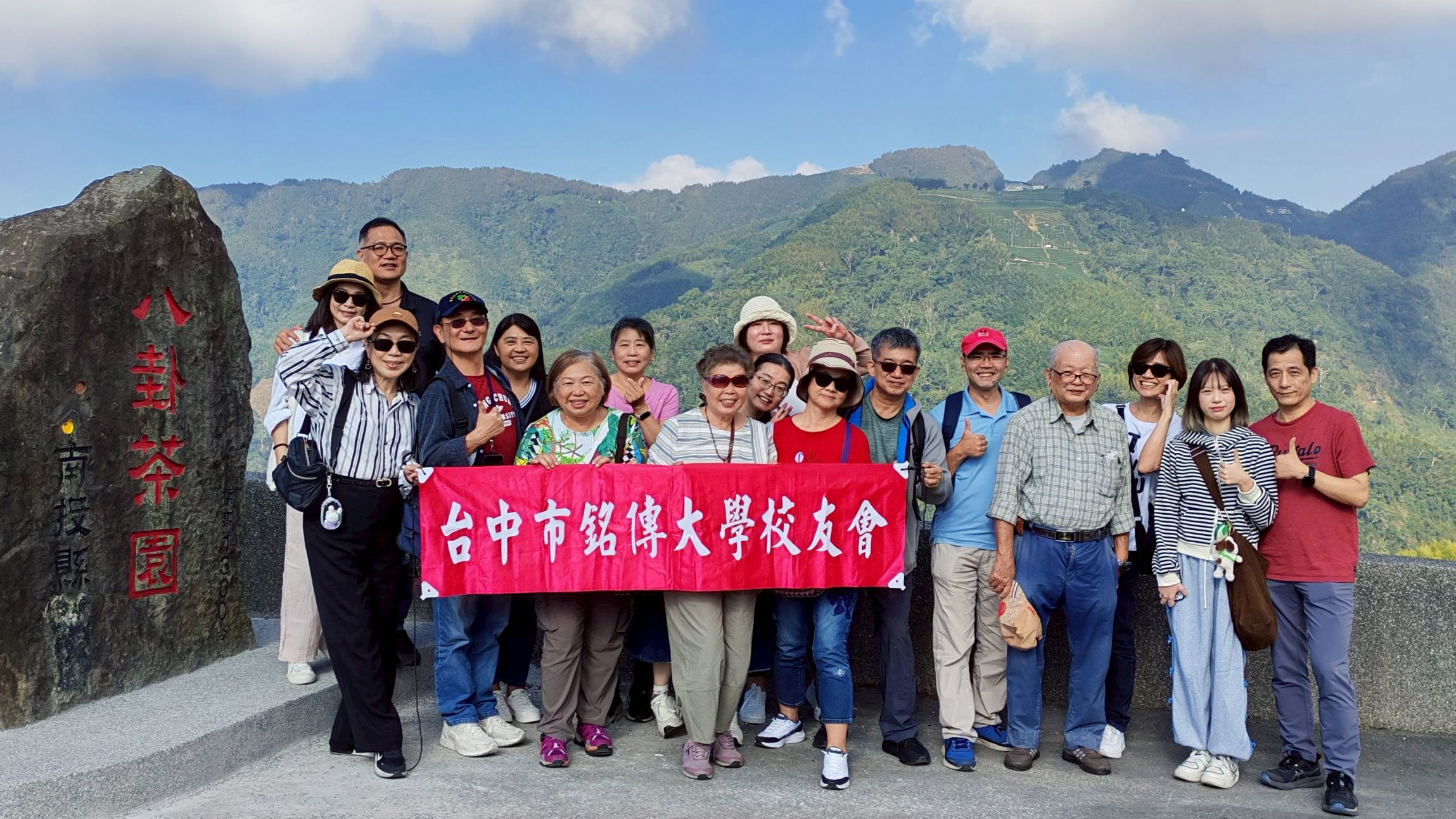 台中市銘傳大學校友會11/16舉辦「114年度會員大會暨一日輕旅行」,校友們在茶園美景與溫暖情誼中,為年度活動寫下美好句點。校友服務暨資源發展處主任張榮農與專員邱貞雯特地南下出席,代表母校向校友致意,並轉達最誠摯的關懷與祝福。