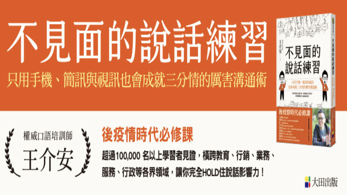 銘傳大學傳播管理研究所碩士、樂麥奇想傳播公司總經理王介安校友,近日由大田出版新作《不見面的說話練習》,聚焦在手機、簡訊、視訊等「看不見對方」的情境中,如何依然說得清楚、有影響力,破解遠距溝通的尷尬與窘境。