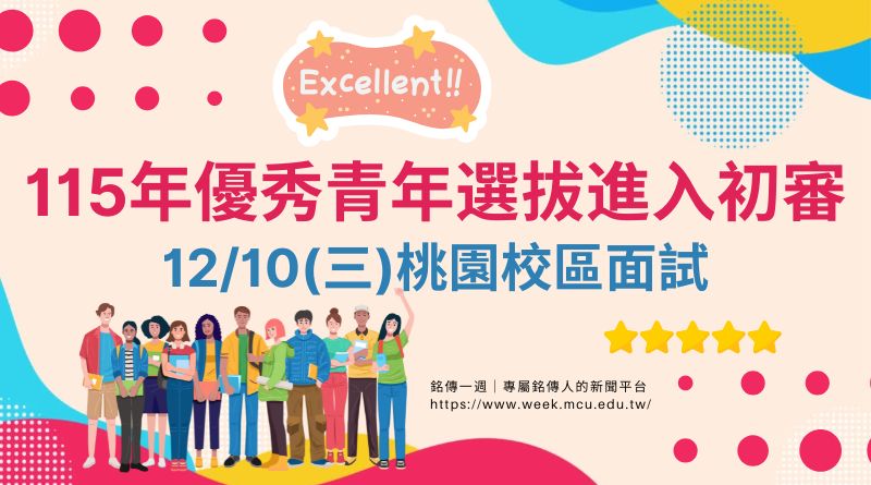 115年優秀青年選拔進入初審 12/10桃園校區辦理面試