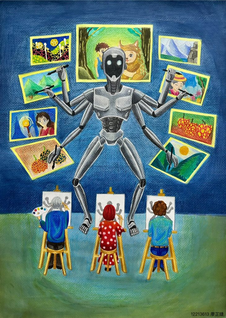 商設三甲廖芷婕的漫畫作品《被複製的靈魂》,探討創作被AI複製的危機,獲得甲等肯定。商設二乙林沁妘的漫畫《e 世代來臨:與手機的親子日記》描繪數位育兒的省思、商設二乙吳芷嫻《希望的世界》呼籲海洋環保、商設二乙林欣慧《香火的記憶》則融合升學壓力與宗教文化,三件作品皆榮獲佳作。