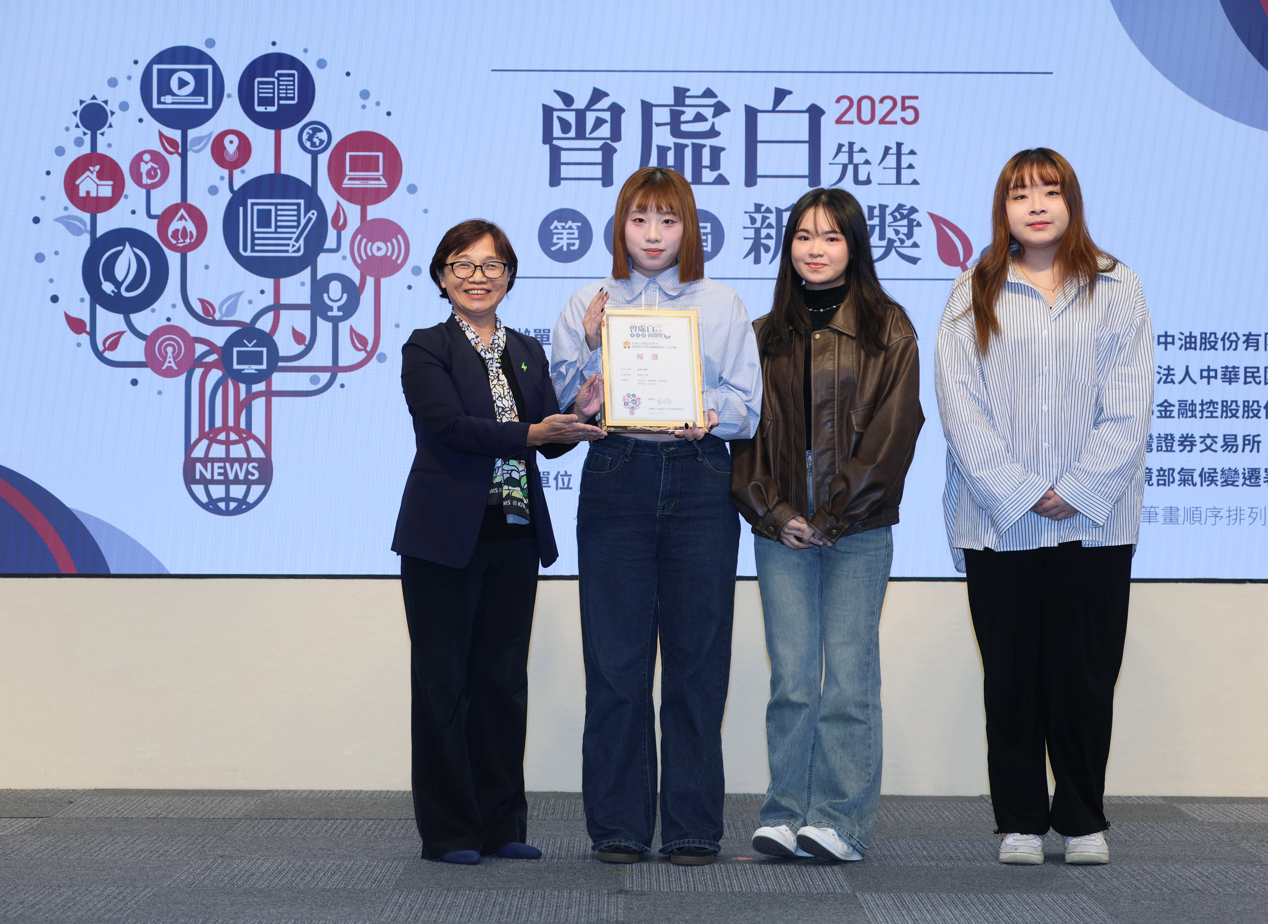 「曾虛白新聞獎」是台灣歷史最悠久的新聞獎項,本屆總計385件參賽作品,評審們從39件入圍作品選出各獎項得主,獲獎作品涵蓋民生議題、環境永續、弱勢保障,得獎報導的廣度與深度,展現新聞界對公共利益守護的多元面向。其中,「台電大專院校學生環境與生態永續報導獎」,廣邀大專院校學生製作環境與生態永續發展相關議題作品參賽,為環境生態永續發展盡一份心力。