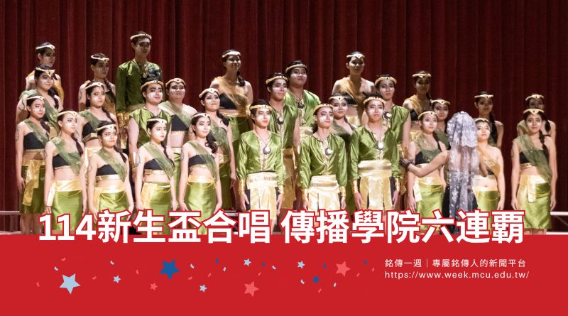 本屆新生盃合唱比賽特別邀請影新系的學長及應英系的學姐分別擔任中文與英文主持人,兩人默契十足、表現沉穩大方。在主持人專業而富節奏感的帶領下,各科系依序進場,隆重而充滿儀式感的開場也正式為這場年度音樂盛典揭開序幕。按照往例,新生盃合唱比賽的指定曲目仍為象徵銘傳精神的《銘傳校歌》,透過一致性的曲目,讓每個科系都能以相同基礎展現聲音的凝聚力與團隊默契。至於自選曲部分,則由各系自由挑選最能展現系上風格與特色的曲目。