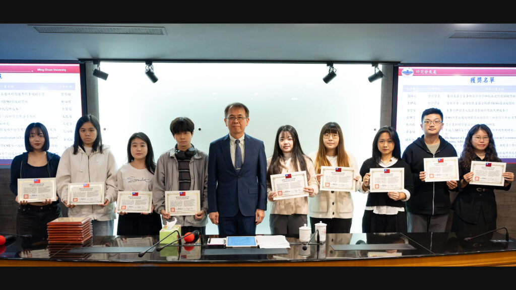 李校長於頒獎時表示,學生能在全國眾多研究計畫中脫穎而出,實屬難得,顯示銘傳在研究訓練、問題意識培養與跨領域指導上的扎實成果,也感謝指導老師長期投入,引導學生在學術研究中建立信心與能力。