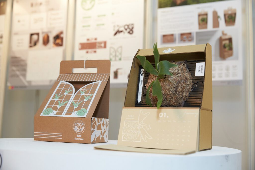 由陳姿卉、洪子涵兩位學生設計的《植鹿》植栽包裝作品,則讓包裝成為生活的一部分,讓鹿角蕨展現最自然的樣子,獲得市長特別獎。有別於以往鹿角蕨的包裝多為密閉式紙箱,團隊設計將木板與包裝結合,讓鹿角蕨能以直立的方式呈現,葉片自然外露,不僅保留其生長姿態,也成為視覺焦點。這款包裝不僅能保護與傳遞產品,更能為日常空間增添裝飾性與生活美感。
