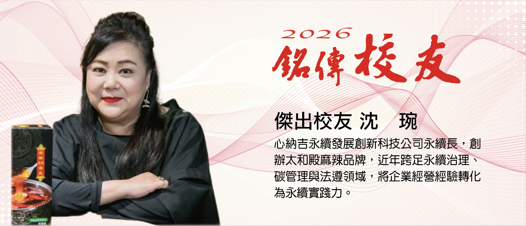 她以高度自我要求,取得多項國際永續與碳管理專業資格,從永續報告、溫室氣體盤查到碳中和實務,皆親身參與。沈琬常說,投入永續既是一份責任,也是一種溫柔的堅持——希望以自身經驗,為地球與人類留下更好的未來,而支撐她持續前行的初心,始終是對母校銘傳的深刻認同。