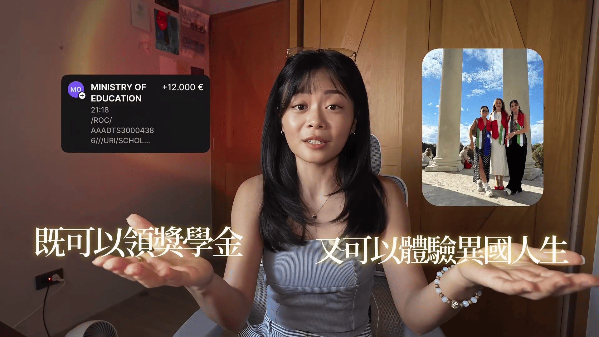 她也善用大學四年積極參與校內外媒體實習,累積實務經驗,並清楚呈現在獎學金申請履歷中,讓審查者看見其具備語言能力與媒體專業的國際人才潛力,成為成功脫穎而出的重要關鍵,獲得12000歐元獎學金。在獲獎分享影片中,陳芷芸完整拆解獎學金申請關鍵,從語言檢定準備、履歷撰寫策略到面試實戰應對,皆以自身經驗提供具體且實用的建議。