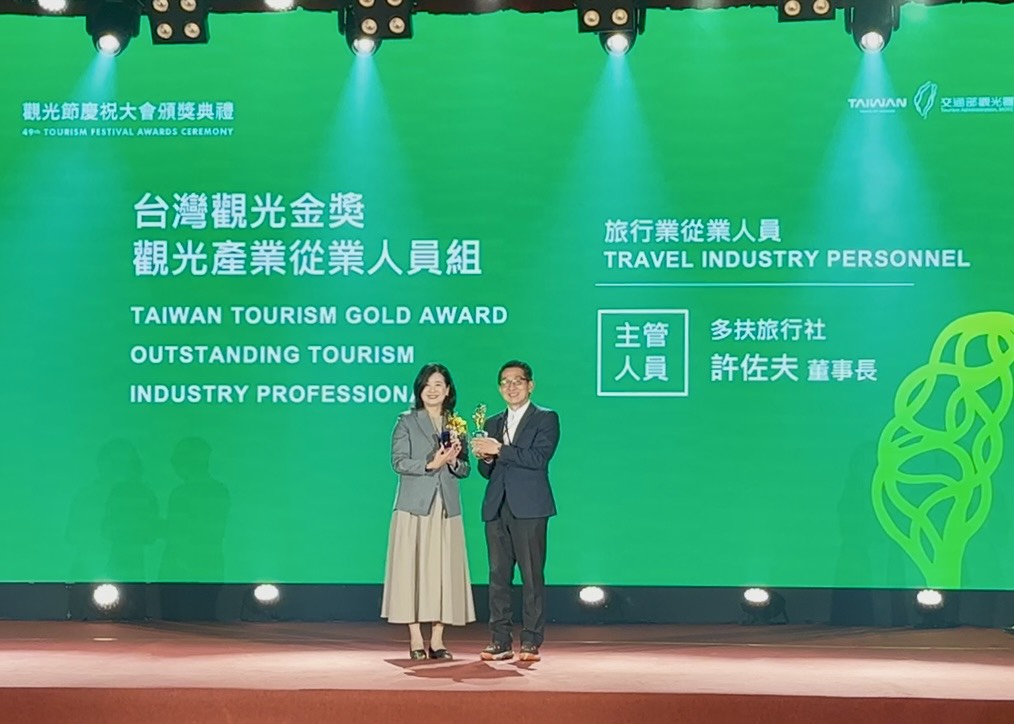 多扶旅行社董事長許佐夫獲頒旅行業從業人員「主管人員組」榮耀。銘傳大眾傳播系畢業,擁有12年影視節目與紀錄片製作經歷,2009年創立台灣第一家專業輪椅接送服務公司「多扶接送」,將服務業精神帶入傳統租車業,解決身障朋友及老人家的移動問題創造價值;2016年成立「多扶假期」,即成為全國第一家能夠完整服務「銀髮長輩」、「身障家庭」和「輪椅朋友」的旅行社。堅守「只有障礙的環境,沒有障礙的人」的核心價值,一路深耕無障礙旅遊,2025年也曾榮獲「第二屆台灣觀光金獎」旅行業最高榮譽肯定。