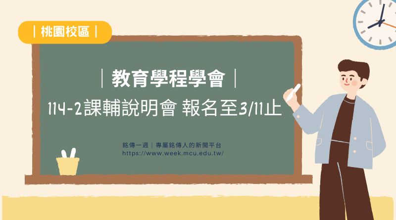 教育學程學會提醒,課輔活動報名至3/11(三)23:00截止,歡迎有志投入教育服務的同學踴躍參加,在協助他人成長的過程中,也為自身累積寶貴的實務歷練。相關說明會資訊與報名細節,可至Instagram【mcu_education】查詢或逕自填寫線上報名表單。