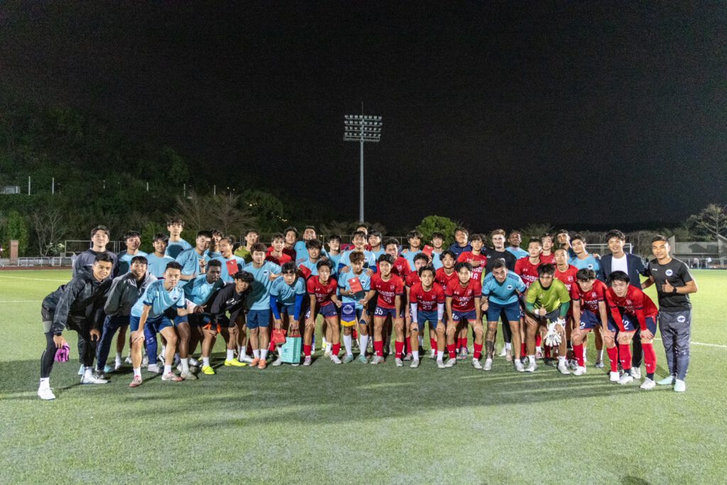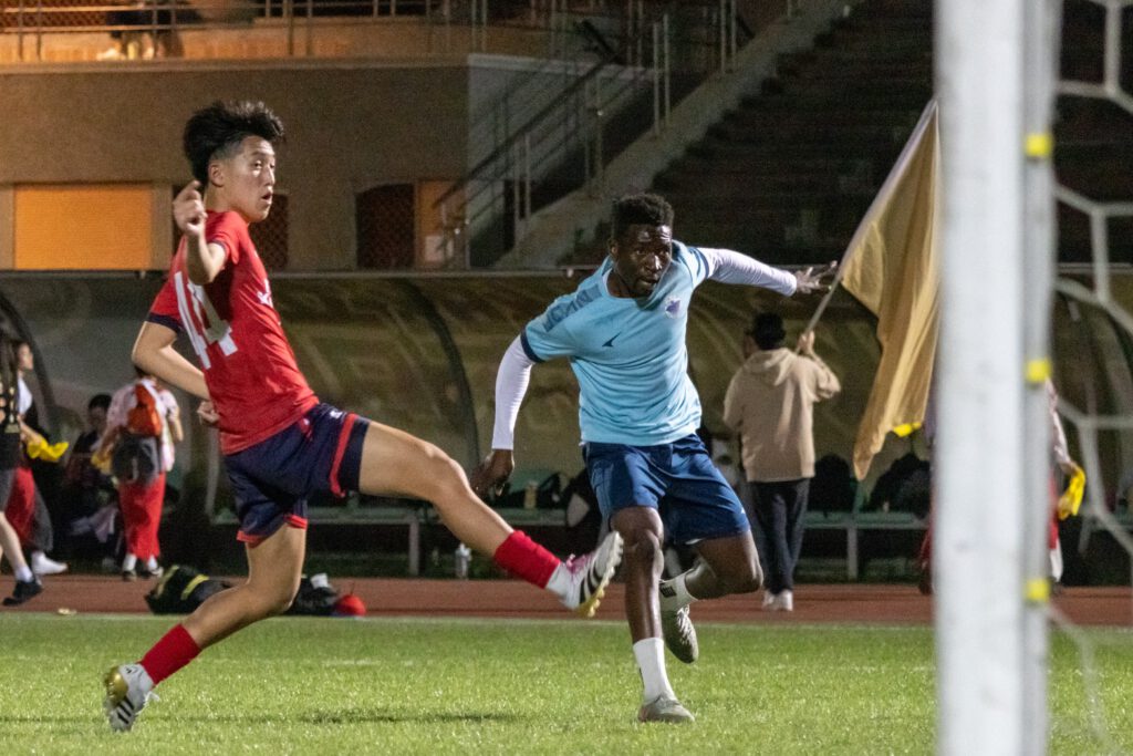 最重要的體育交流活動,傍晚兩校在銘傳足球場上進行一場友誼賽切磋球技。比賽過程節奏明快,雙方在攻防之間展現各自特色,不僅提升競技層面的學習,也讓球員透過實際對抗累積經驗。場上全力以赴,場下則藉由交流互動拉近彼此距離,讓比賽不僅止於勝負,更成為交流的重要一環。
