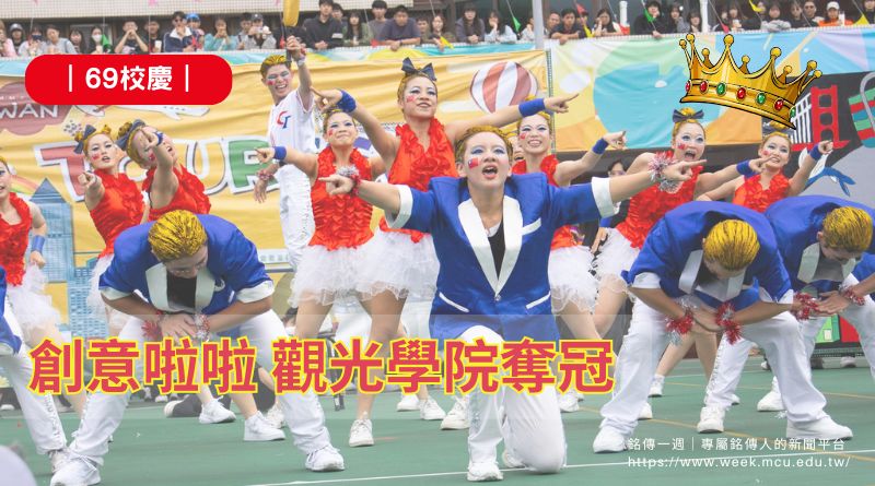 銘傳大學第69屆校慶重頭戲「創意啦啦舞競賽」盛大登場,今年共有十二支隊伍參與演出,各學院精心籌備、全力以赴,在舞台上展現創意編排與團隊默契,帶來一場場令人目不轉睛的精彩表演。經過激烈競爭與評審評選,最終由觀光學院奪下冠軍寶座,傳播學院榮獲亞軍,季軍則由管理學院A隊拿下,第四名為電機資訊學院,第五名管理學院B隊,第六名為人文社會暨教育學院A隊;此外,佳作獎項則由法律學院、設計學院及人文社會暨教育學院B隊獲得,所有參賽隊伍皆展現出高度熱情與不凡實力,為本屆校慶留下難忘篇章。