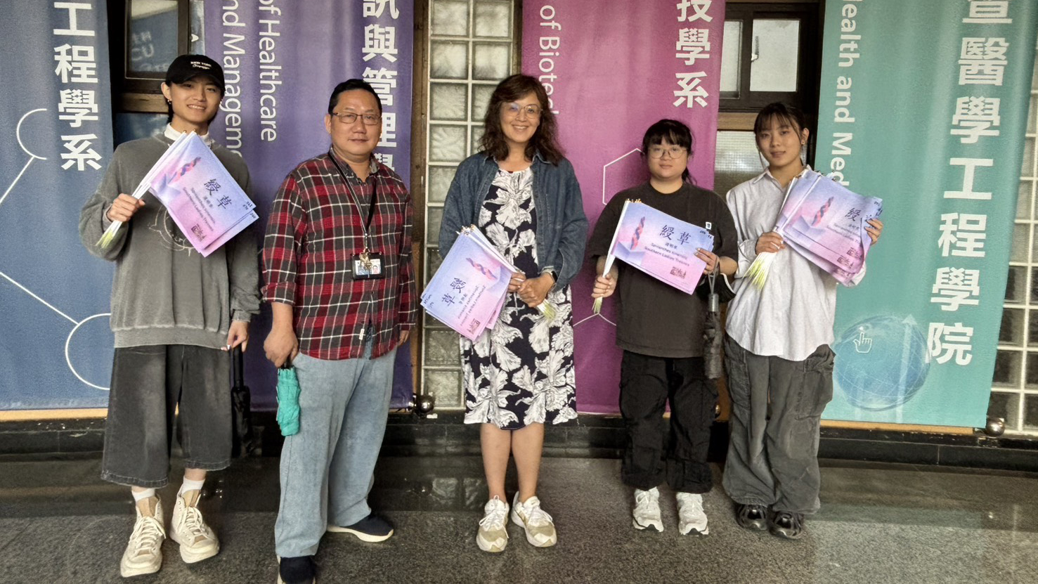 由於綬草體型細小,未開花時與一般草類外觀相近,不易辨識。為進一步掌握分布情形,並避免在日常整理草地時被誤拔,生科系林翰佐主任於清明假期期間,帶領師生進行校園調查,逐一標註植株位置。經初步統計,桃園校區目前已有超過100株綬草,成為校園中難得的自然觀察資源。