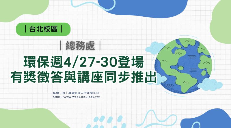 從日常生活到全球議題,環保早已成為每個人不可忽視的重要課題。為提升校園環保意識,總務處事務組將於4/27至4/30辦理「114學年度台北校區環保週」,透過有獎徵答與專題講座等多元形式,鼓勵教職員工生從生活中實踐永續行動,培養關心環境的態度。