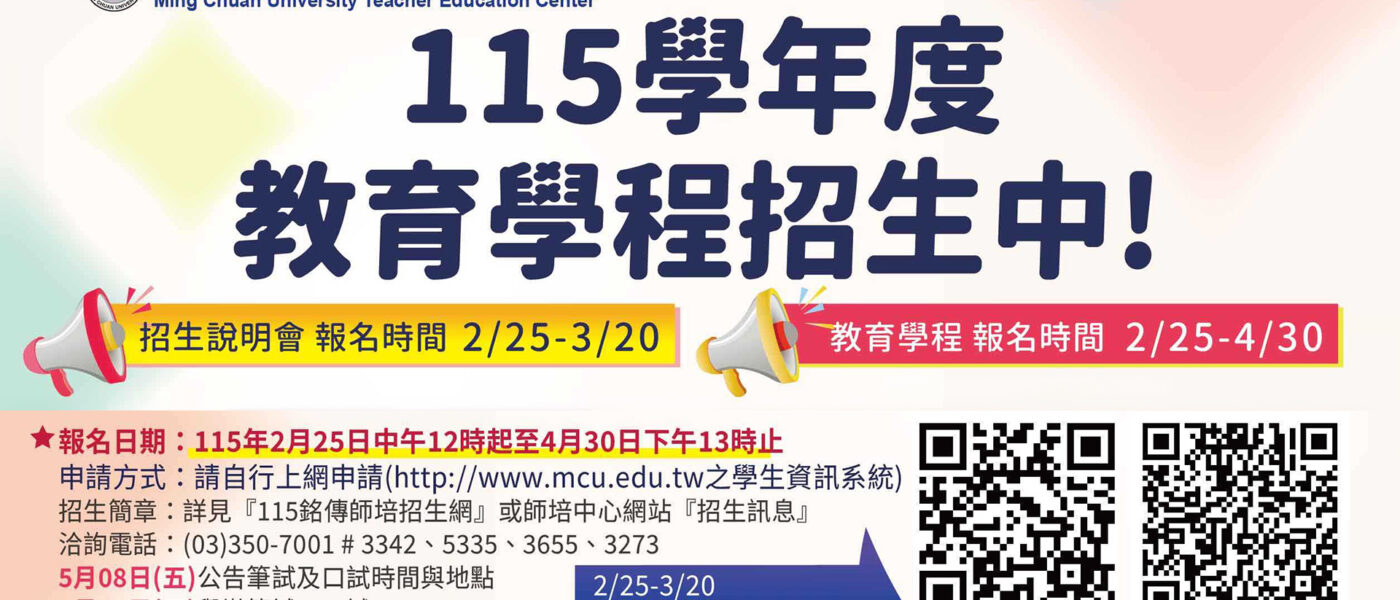 銘傳師培115學年度教育學程招生啟動 新增三大專長拓展中等師資培育版圖