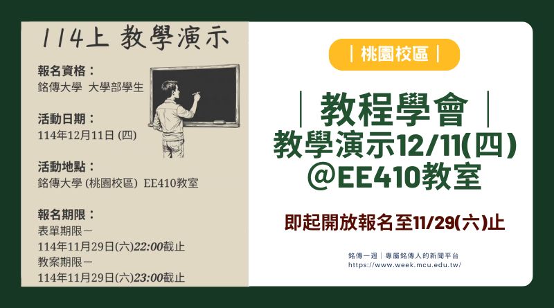 桃園|教育學程 12/11 登台教學演示 11/29 前報名